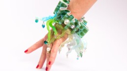 Das Projekt verbindet Design, Recyclingtechnologie und Materialkompetenz. Für die Herstellung des Schmucks wurde Kunststoff aus dem Recyclingprozess von Interzero eingesetzt und gezielt weiterentwickelt. Die Verarbeitung und Qualitätsprüfung erfolgte im Interzero Kompetenzzentrum in Maribor, das sich auf innovative Kunststoffaufbereitung und Materialentwicklung spezialisiert hat.